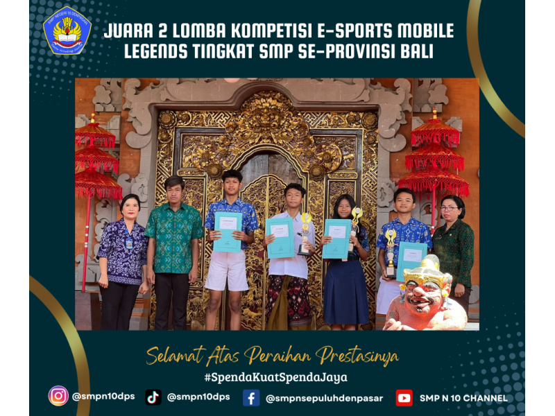SelengkapnyaHallo Sobat SPENDA! Prestasi membanggakan SMP Negeri 10 Denpasar meraih Juara 2 Lomba Kompetisi E-Sports Mobile Legends Ti ...