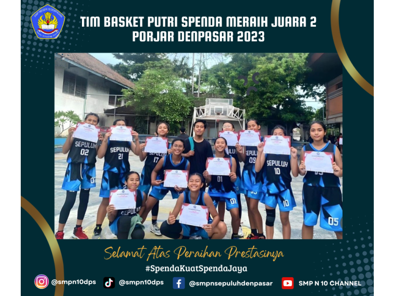 SelengkapnyaHallo sobat Spenda! Prestasi membanggakan, tim basket putri SMP Negeri 10 Denpasar meraih Juara 2 Porjar Denpasar 2023 pada ...