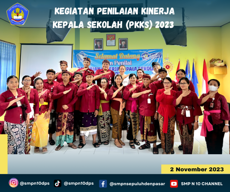 Pada hari Kamis tanggal 2 November 2023, Tim Asesor PKKS Dinas Pendidikan Kota Denpasar Dra. Ni Nyoman Kartiniasih, M.Pd melaksanakan tugasnya untuk menilai kinerja Kepala Sekolah SMP Negeri 10 Denpasar Tahun 2023. Kegiatan ini dihadiri oleh Tim Penilai PKKS, Komite Sekolah dan tim PKKS Sekolah.